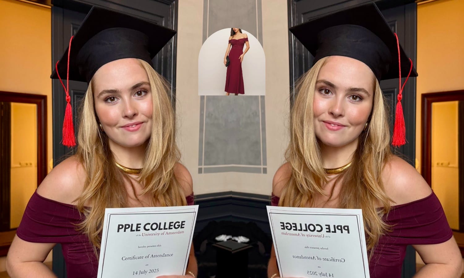 Het moge duidelijk zijn op de foto’s vanuit het Concertgebouw in Amsterdam maandag: Amalia is feeling herself. En terecht, want de prinses straalt met haar net-niet-diploma. In een jurk van het LA cool girl-label Reformation.
