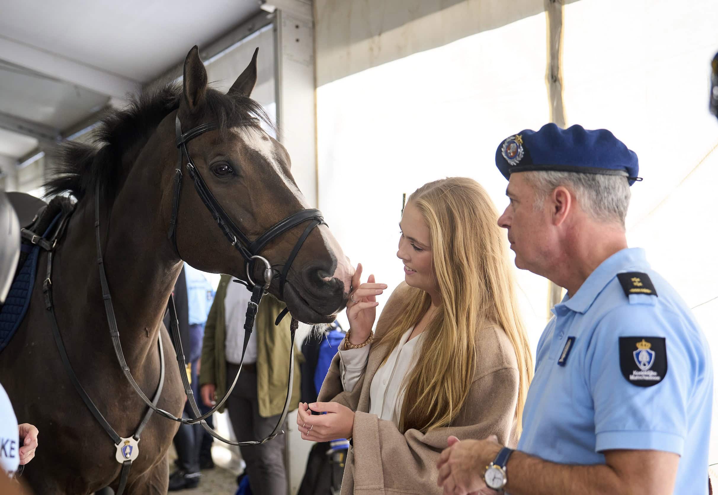 De prinses ging zaterdagmiddag in Wassenaar langs bij de drie bereden Ere-escortes. Die drie duo’s van ruiters en paarden behoren tot de politie en de Koninklijke Marechaussee en zijn deze dagen druk met de voorbereidingen voor Prinsjesdag.