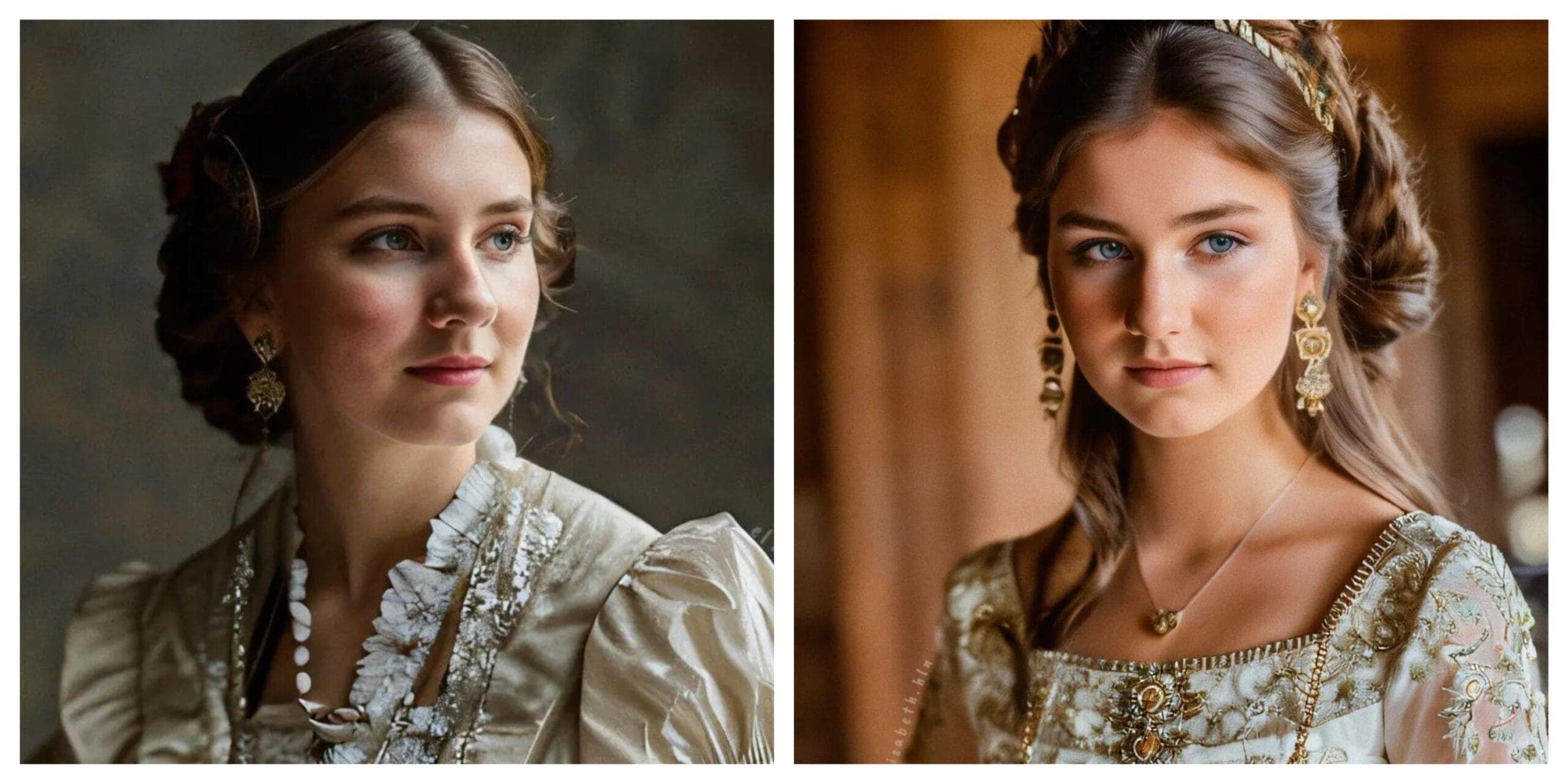 AI heeft zo zijn voor- en nadelen. Maar het is wel een originele manier om van een moderne prinses een tijdreiziger te maken, zolang het maar duidelijk is dat het geen echte portretten zijn.